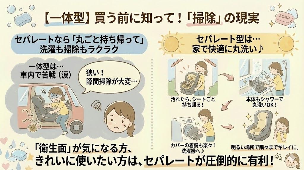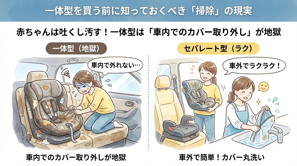 赤ちゃんは吐くし汚す!一体型は「車内でのカバー取り外し」が地獄