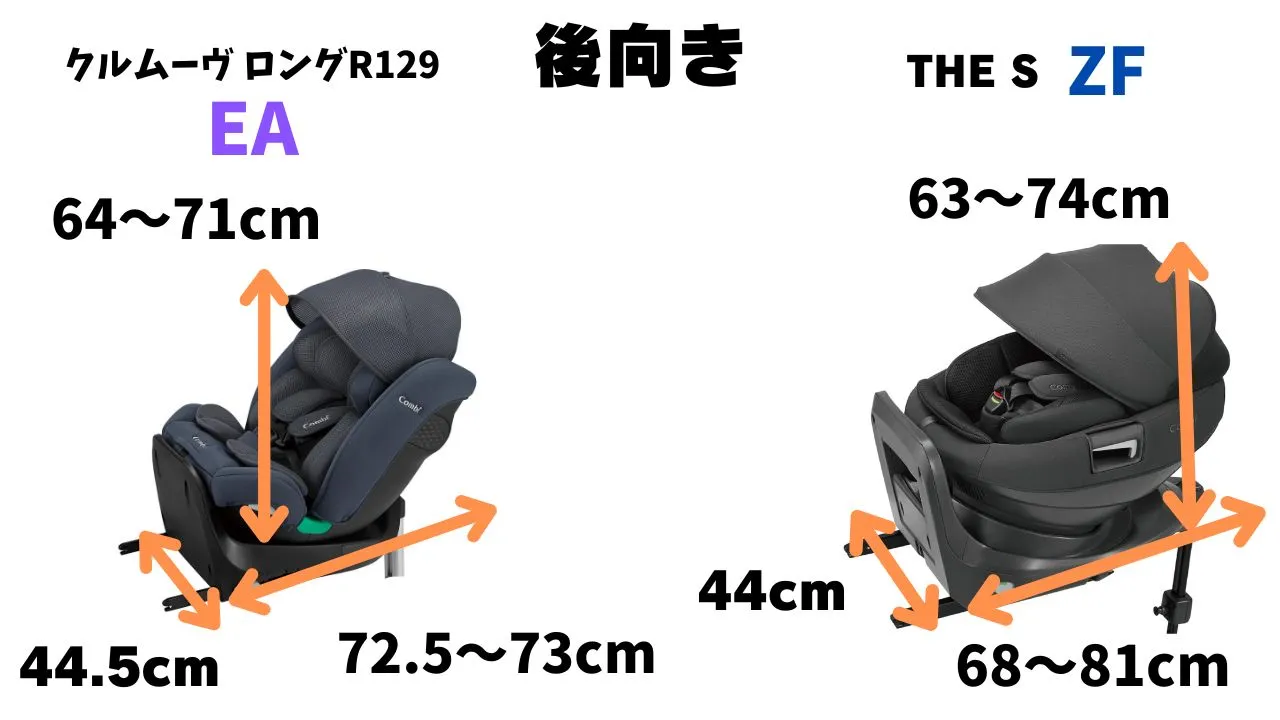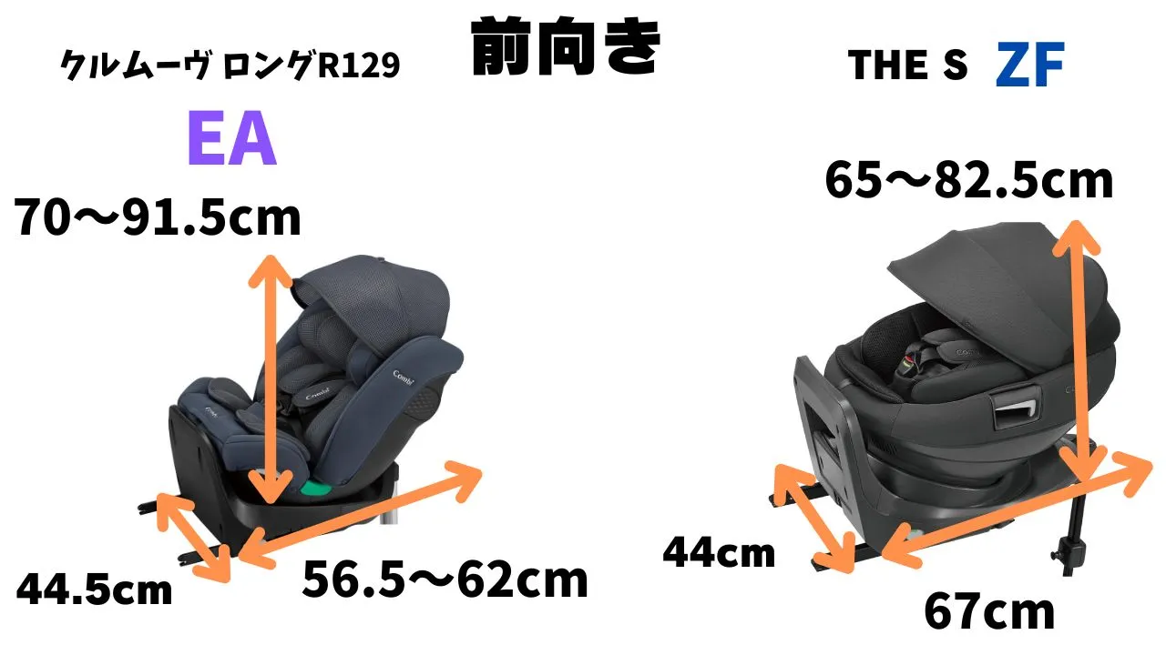 本記事では、10歳頃まで長く使える「クルムーヴロングR129EA」とベビーカーにも付け替え可能な「THE S ZF」の違いについて比較します。